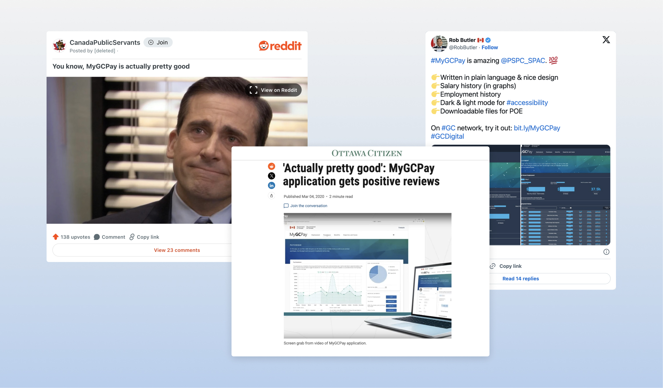 Most importantly, MyGCPay earned support from real users—leading to positive national news coverage and kudos on social media (see below ↓)